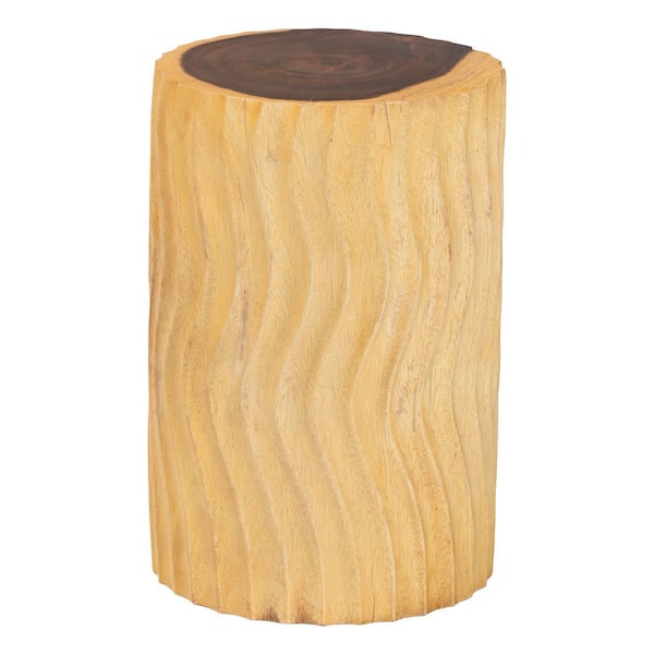 Fuchsia 11.8 in. Natural Brown Round Suar Wood End Table