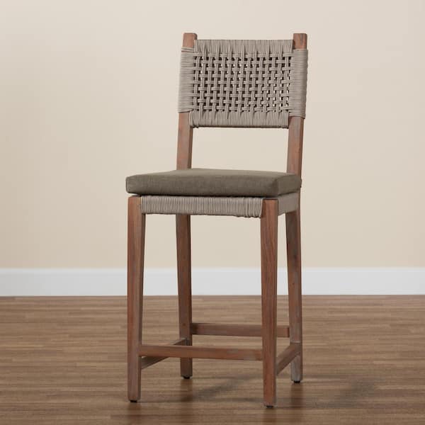 Heyna 44.1 in. Grey and Mahogany Low Back Wood Frame Counter Height Bar Stool