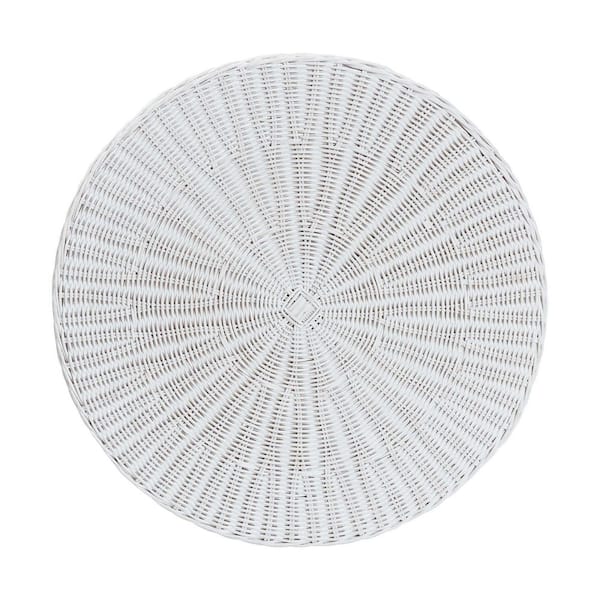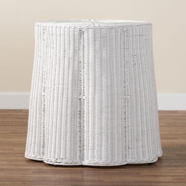 Palm 28 in. White Round Rattan Wicker End Table