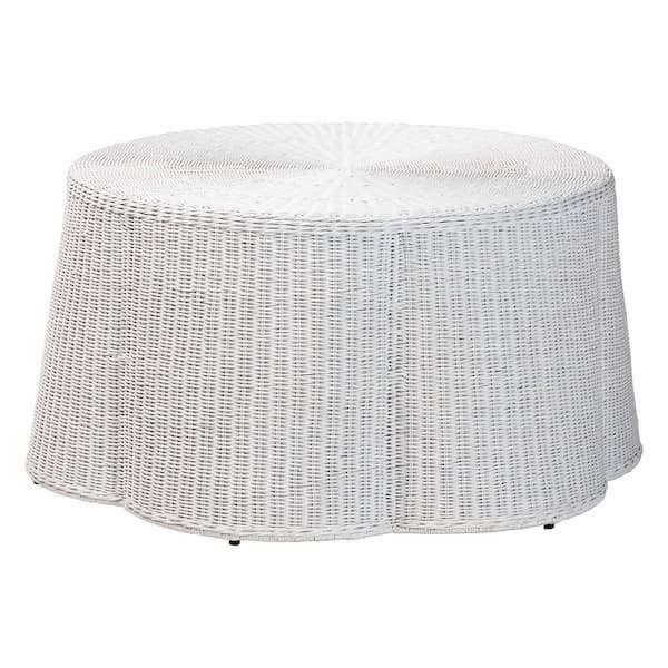 Palm 39.75 in. Chalk White Round Natural Rattan/Wicker Coffee Table