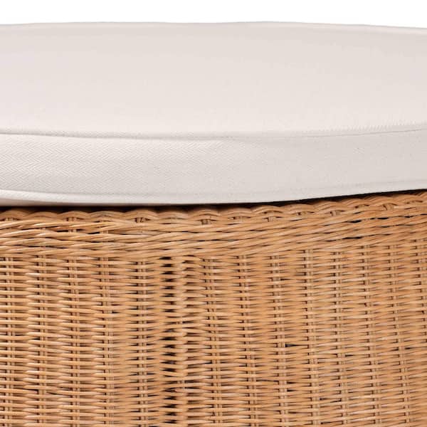 Palm Light Honey Rattan and Fabric 32 in. Round Ottoman