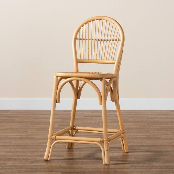 Wina 39 in. Natural Low Back Rattan Counter Height Bar Stool