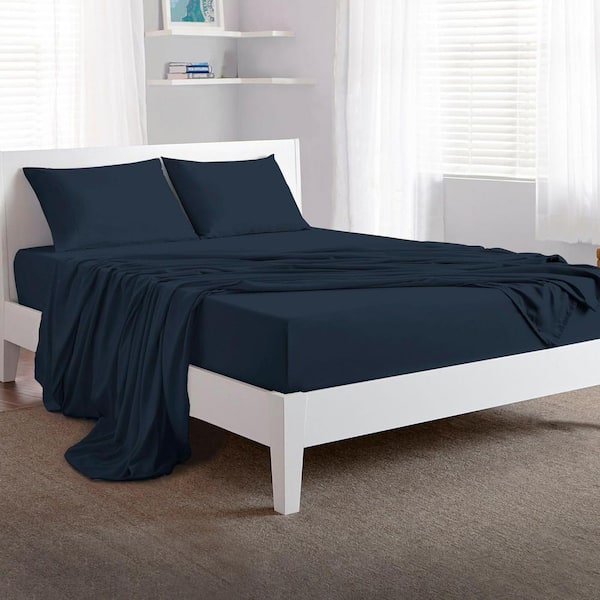 Basic 4-Piece Bed Sheet Set Polyester Lightweight Breathable Sheets Navy King