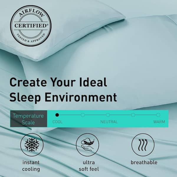 Ver-Tex 4-Piece Sheet Set Polyester Cooling Breathable Ultra-Soft Feel Misty Blue Queen