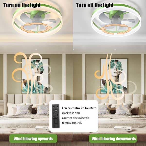 19.7 In. Smart Indoor Green Ceiling Fan with Remote Control and Integrated Round Changing Color LED