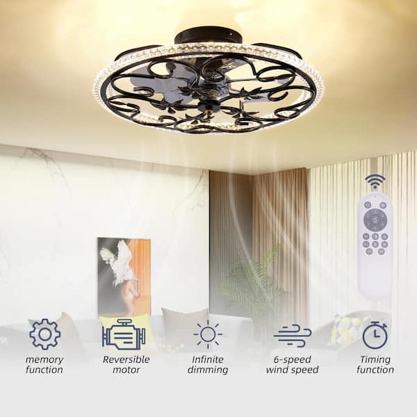 19.7 in. Indoor Black Ceiling Fan with 3 Color LED and Remote Control