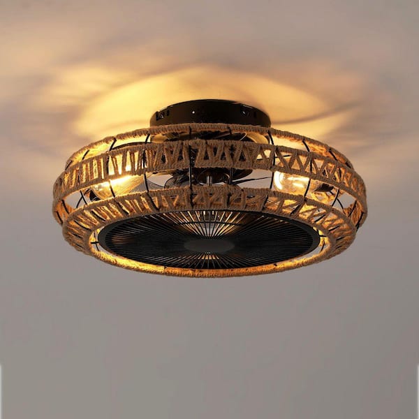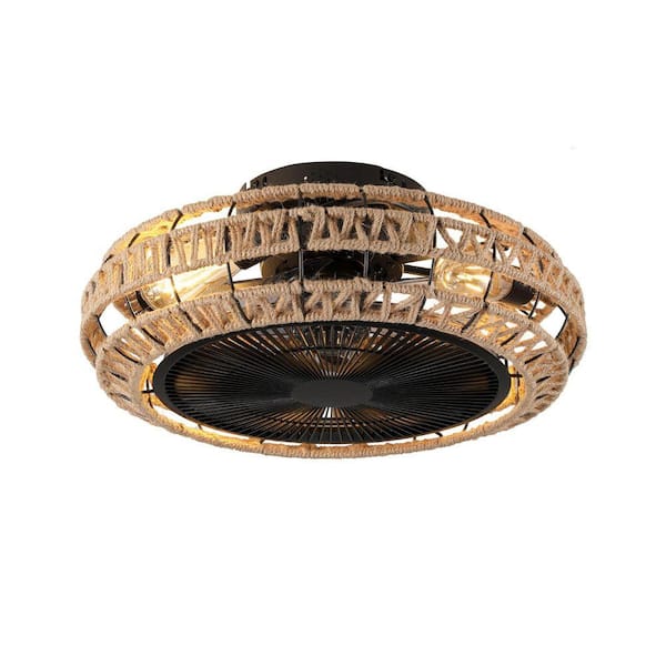 20 in. Black Caged Vintage Rope Ceiling Fan with Light, 6-Speed Remote Control, Adjustable Airflow, Not Included Bulbs