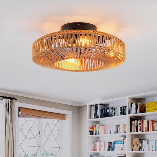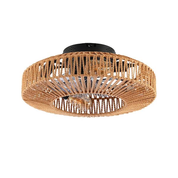 20 in. Matte Black Rope Caged Ceiling Fan with Light, Flush Mount Chandelier, Remote Control, Not Included Bulbs