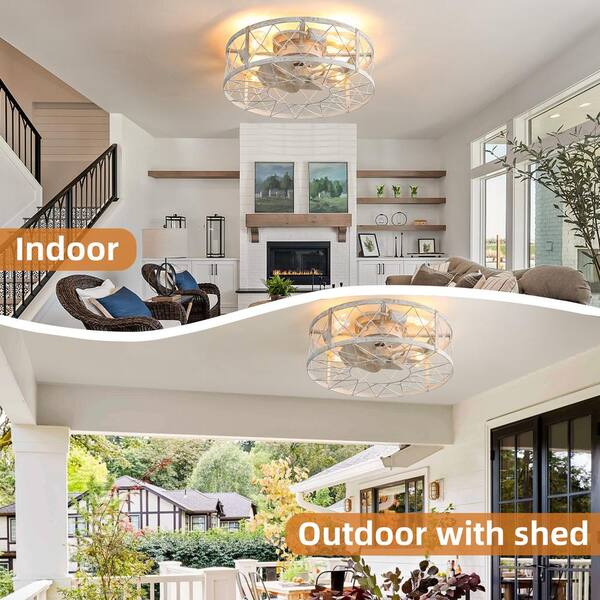 Athena 20 in. Vintage Indoor Gold Cage Lighted Ceiling Fan with Remote and APP Control