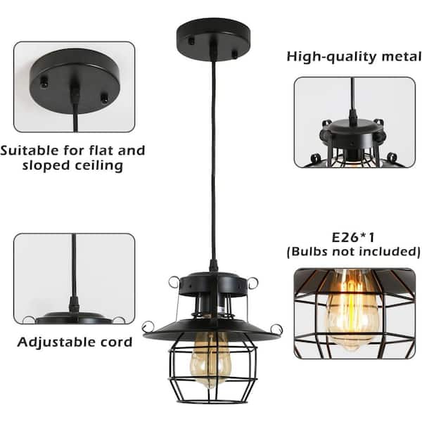 Daedalus 1-Light Rustic Black LED Pendant Light with Metal Cage and Dimmable