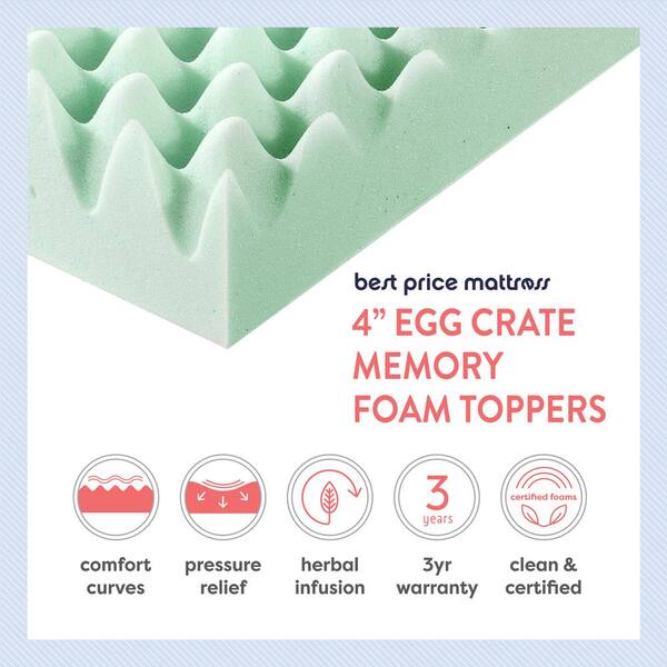 4 in. Short Queen Egg Crate Memory Foam Mattress Topper with Aloe Vera Infusion