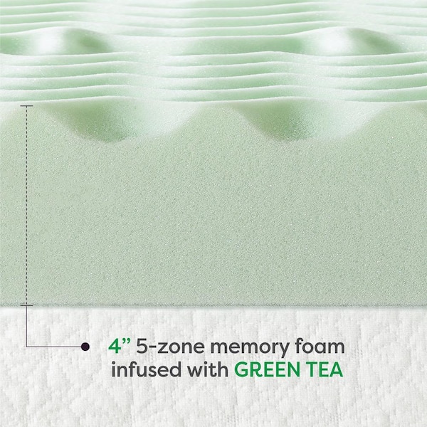 4 in. Twin XL 5-Zone Memory Foam Mattress Topper with Green Tea Infusion