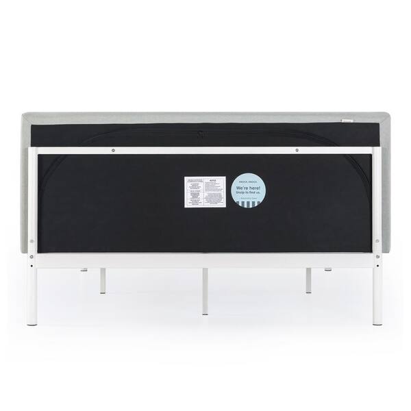 Bree Metal Platform Bed with Curved Upholstered Headboard, Steel Slats, Sky Grey, King