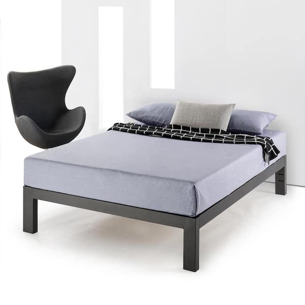 Just Mallet 14 in. Black King Heavy Duty Metal Platform Bed with Wooden Slats