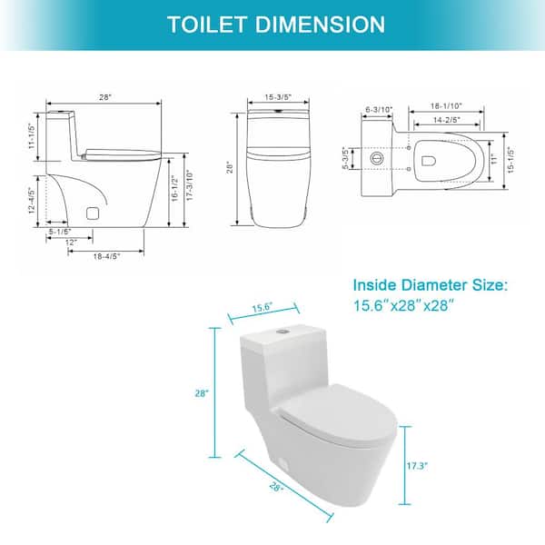 1-Piece 1.6/1.1 GPF Dual Flush Elongated Toilet with Soft Closing Seat in White