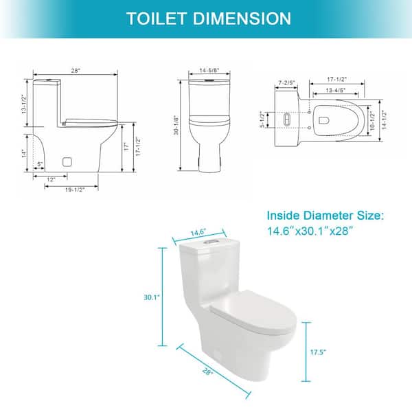 1-Piece 1.6/1.1 GPF Dual Flush Elongated Toilet with Soft Closing Seat in White