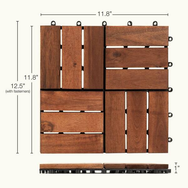 11.8 in. x 11.8 in. Square Acacia Wood Interlocking Deck Tiles,Patio Floor Tiles,Brown (Set of 27)