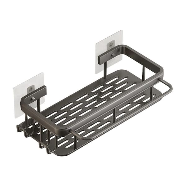 12.6 in. W x 5.1 in. D x 2.2 in. H Gray Bathroom Wall Shelves with Adhesive, Towel Bar and Hooks (1 Pack)