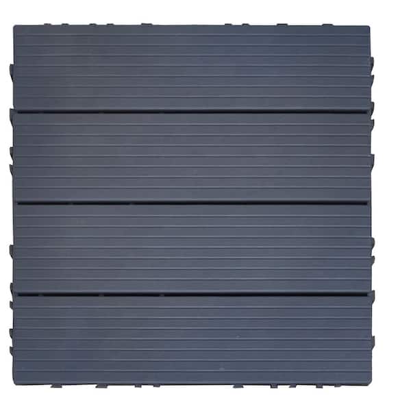 12 in. x 12 in. Square Plastic Composite Deck Tiles Floor Tile for Patios,Balconies,Rooftops,Decks,Dark Grey (35 Pack)