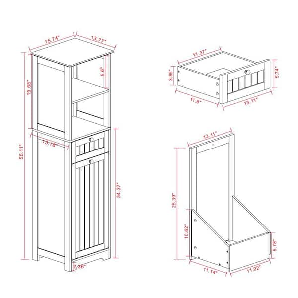 15.74 in. W x 13.77 in. D x 55.11 in. H Bathroom Storage Cabinet with 1-Drawer, Tilt-Out Laundry Sorter Cabinet, White
