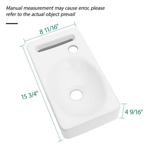 15.75 in. x 8.69 in. x 4.56 in. White Ceramic Rectangle Wall Mount Bathroom Sink with Single Faucet Hole