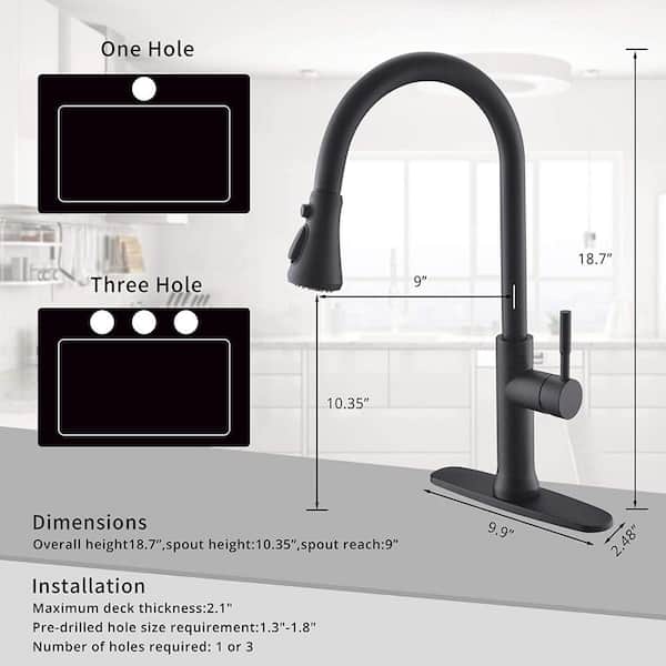 18.7 in. H Touch-On Single-Handle Pull Down Sprayer Kitchen Faucet in Matte Black w/2-Way Pull Out Sprayer, Matte Black