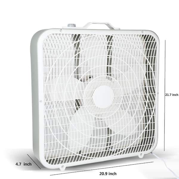 20 in. 3-Speed Portable Box Fan in White with Convenient Carry Handle and Safety Grills, For Home Office