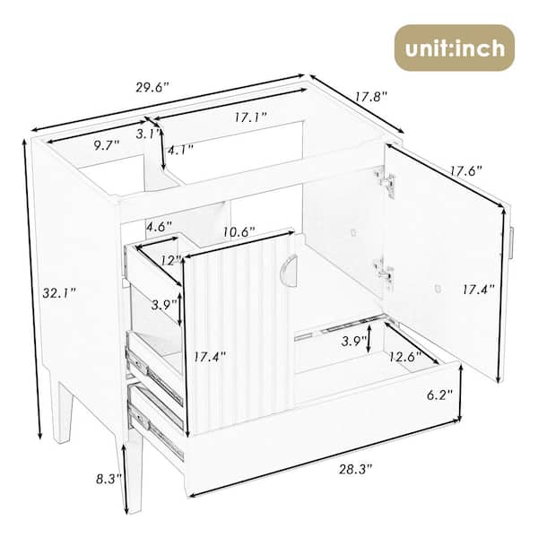 29.6 in. W x 17.8 in. D x 32.1 in. H Bath Vanity Cabinet without Top in Grey, Base Only, with Doors and Drawer