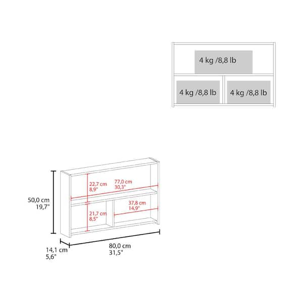 31.5 in. W x 5.6 in. D x 19.7 in. H White Wall Mount Storage Cabinet with Double Door Mirror and 3-Shelves