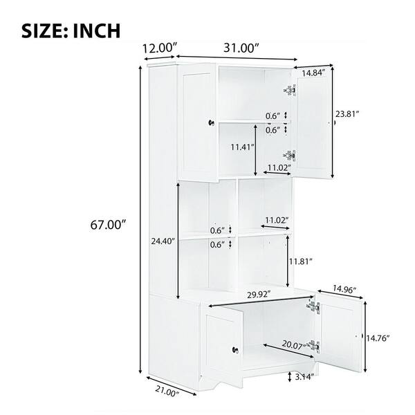 31 in. W x 21 in. D x 67 in. H Black Bathroom Storage Cabinet with 4 Doors, Adjustable Shelves