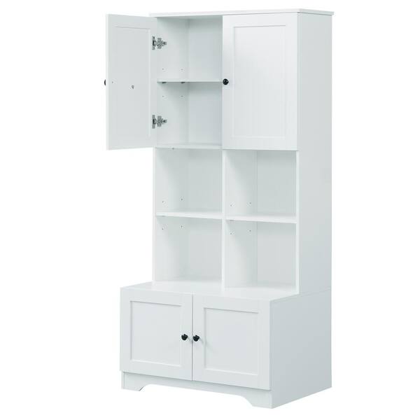 31 in. W x 21 in. D x 67 in. H White Bathroom Storage Cabinet with 4 Doors, Adjustable Shelves