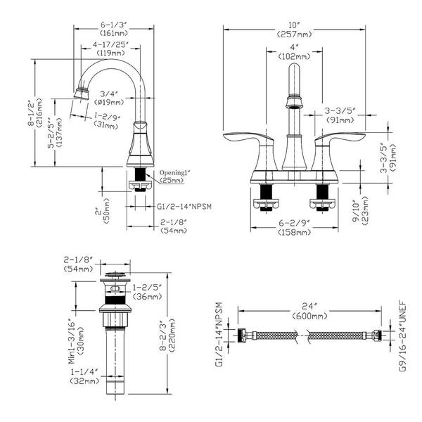 4 in. Centerset 2-Handle Bathroom Sink Faucet with Pop-up Drain and Supply Hoses, Oil-Rubbed Bronze