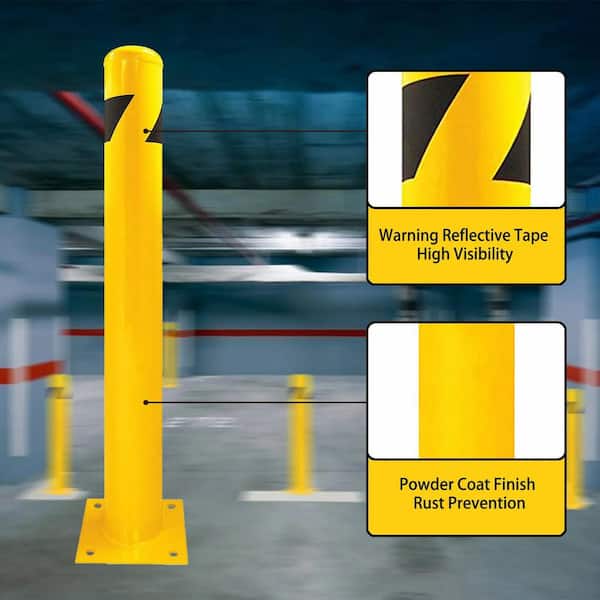 42 in. H x 4.5 in. D Yellow Steel Bollard Post for Traffic-Sensitive Area, Garage or Parking Lot (Set of 2)