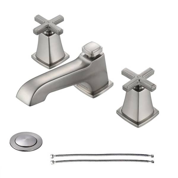 8 in. Widespread Double Handle Bathroom Faucet with Pop Up Drain in Brushed Nickel
