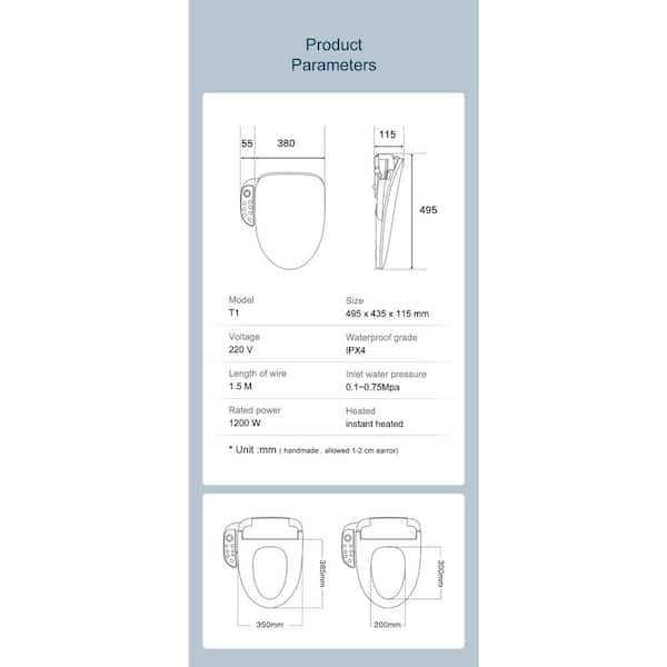 Elongated Smart Heated Toilet Seat with Warm Water and Dryer, Feminine and Child Wash, Adjustable Water Pressure, White