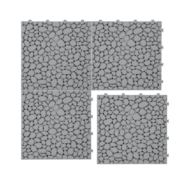 Gray 12 in. x 12 in. x 0.56 in. Thick Plastic Interlocking Deck Tiles Pebble Stone Pattern Anti-Slip 12 sq. ft. 12 Pack