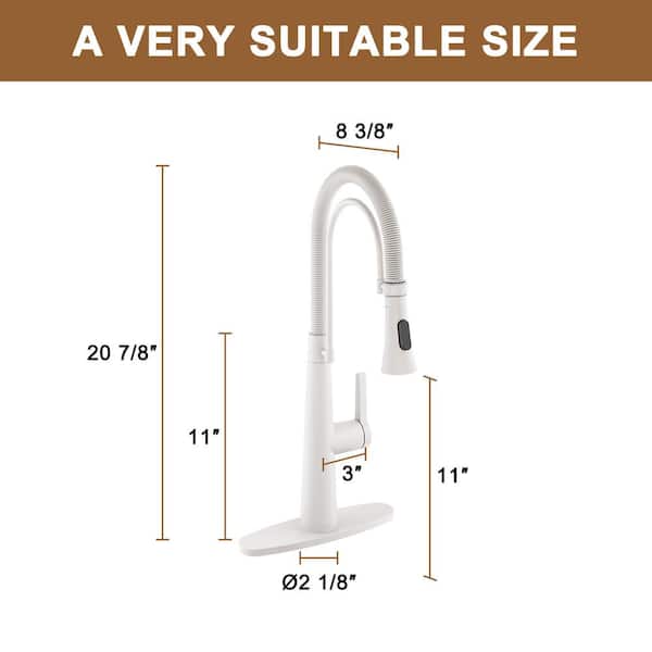Single Handle Spring Neck Standard Kitchen Faucet in Matte White