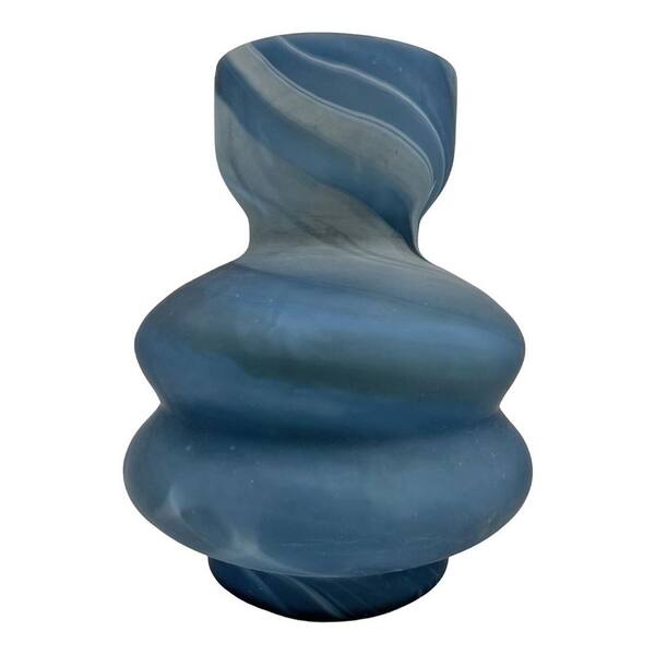 10 in. Blue Marble Decorative Glass Vase