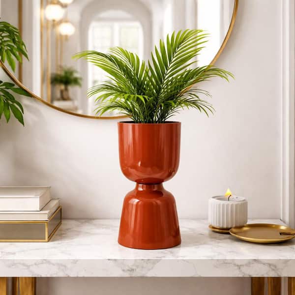 12.5 in. Iron Metal Decorative Round Cylinder Brown Vase
