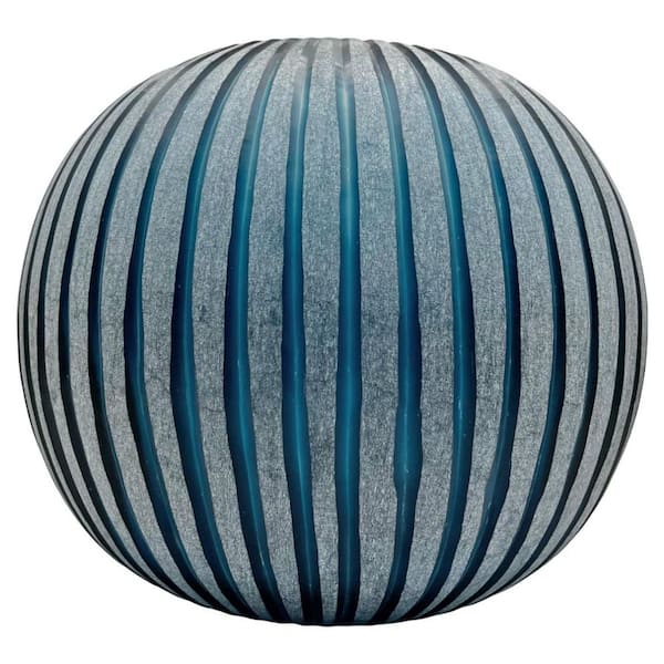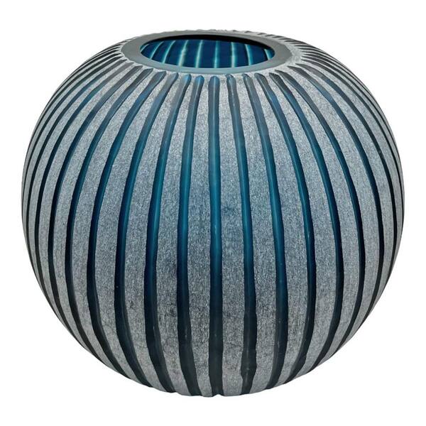 12 in. Decorative Ribbed Blue Round Glass Vase