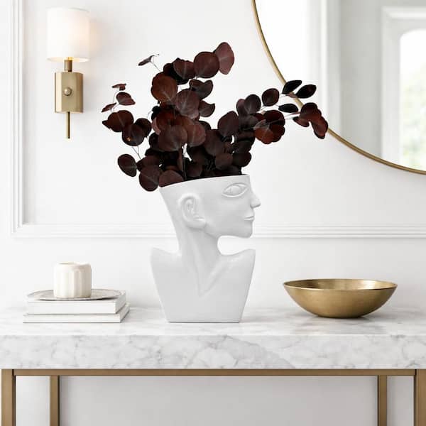 14.5 in. Decorative Metal Abstract Face Vase in White