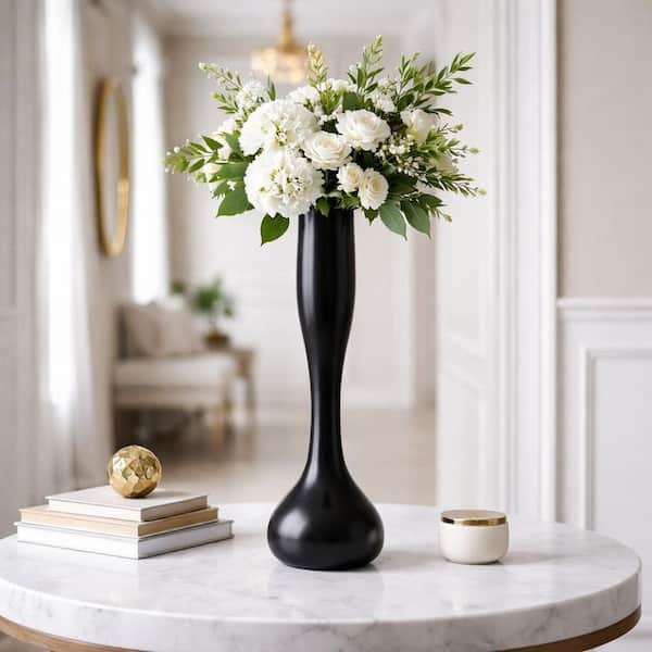 15.5 in. Decorative Aluminum Flute Vase in Black