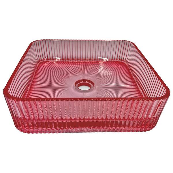 30 in. Wall Mounted Bathroom Countertop Shelf in White Solid Surface with Pink Square Glass Vessel Sink