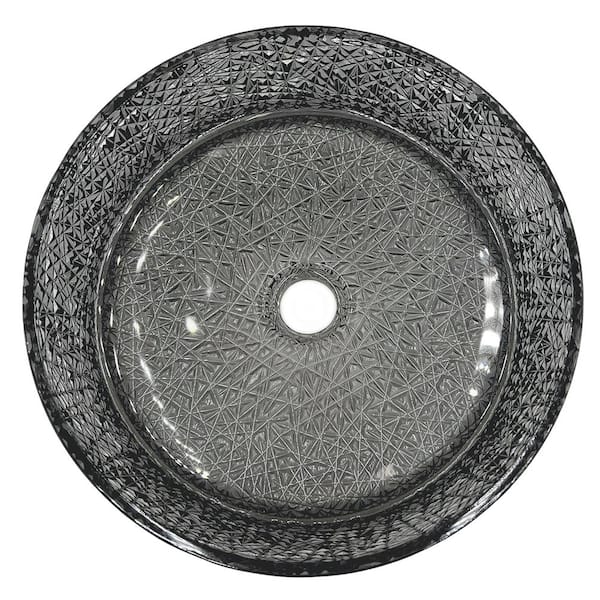 36 in. Wall Mounted Bathroom Countertop Shelf in White Solid Surface with Light Black Round Glass Vessel Sink