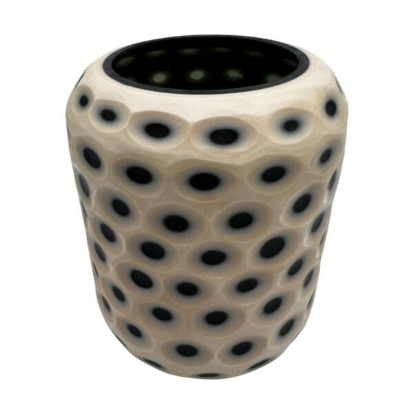 Beige 7 in. Decorative Handmade Carved Lattice Cylinder Glass Vase