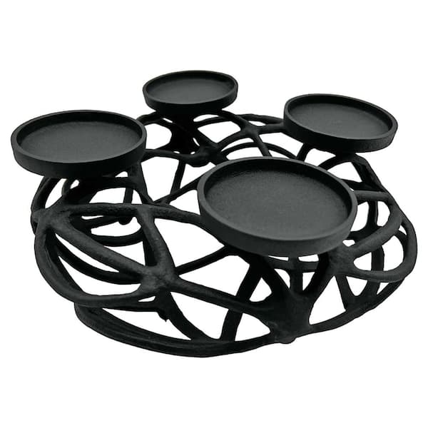 Black 12 in. x 12 in. Aluminum Four Leg Tea Light Metal Candle Holder