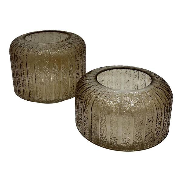 Brown 7 in. and 5 in. Decorative Cylinder Ribbed Glass Vase Set of 2