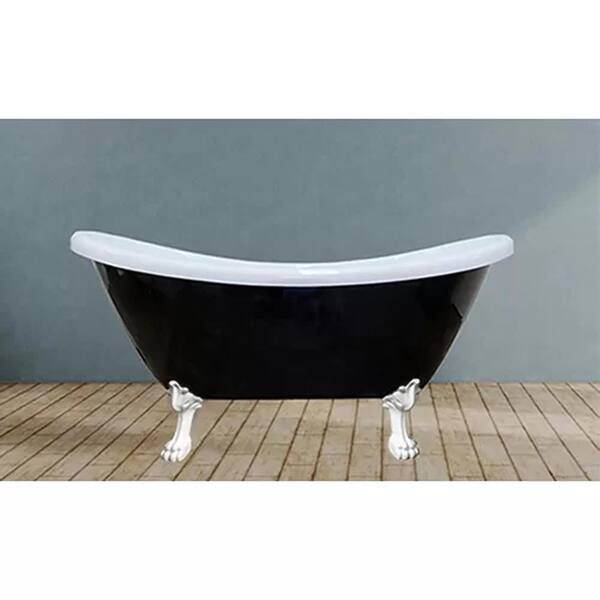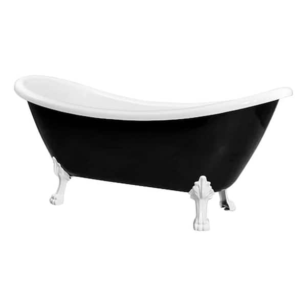 Daphne 69.29 in. x 28.34 in. Freestanding Soaking Acrylic Clawfoot Bathtub with Center Drain Black and White Tiger Feet