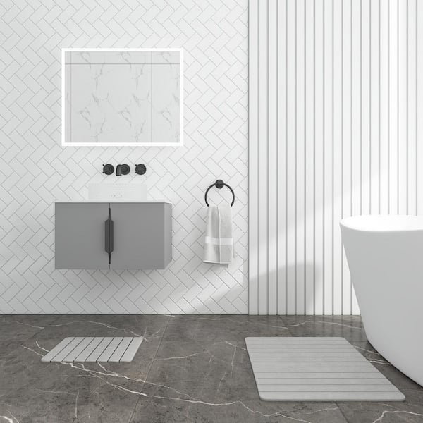 Diatomite Quick-Dry Stone Water-Absorbing Bath Mat Set Large and Small