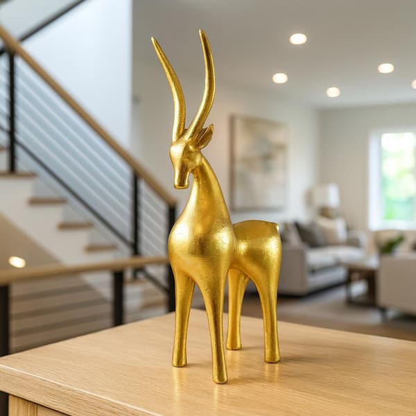 Goat Gold 12 in. x 6 in. x 3 in. Abstract Aluminum Metal Goat Sculpture